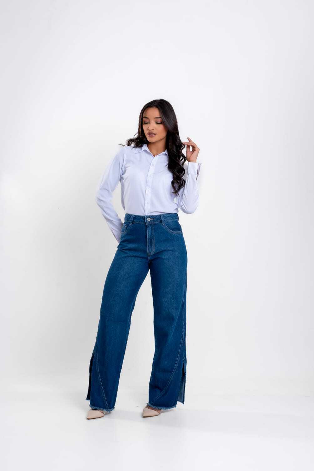 A calça wide leg com fenda na lateral da perna é uma peça que combina elegância e estilo contemporâneo. O corte wide leg proporciona um caimento fluido e sofisticado, conferindo um visual moderno e confortável. A fenda na lateral da perna adiciona um toque ousado, revelando sutileza na movimentação e adicionando um elemento de sensualidade ao design. Essa calça é versátil, podendo ser usada em diversas ocasiões, desde eventos mais formais até encontros casuais. Feita com tecidos de alta qualidade no 100% algodão, lavagem escura, oferece conforto e destaque visual, tornando-a uma escolha autentica para quem busca moda com um toque diferenciado.