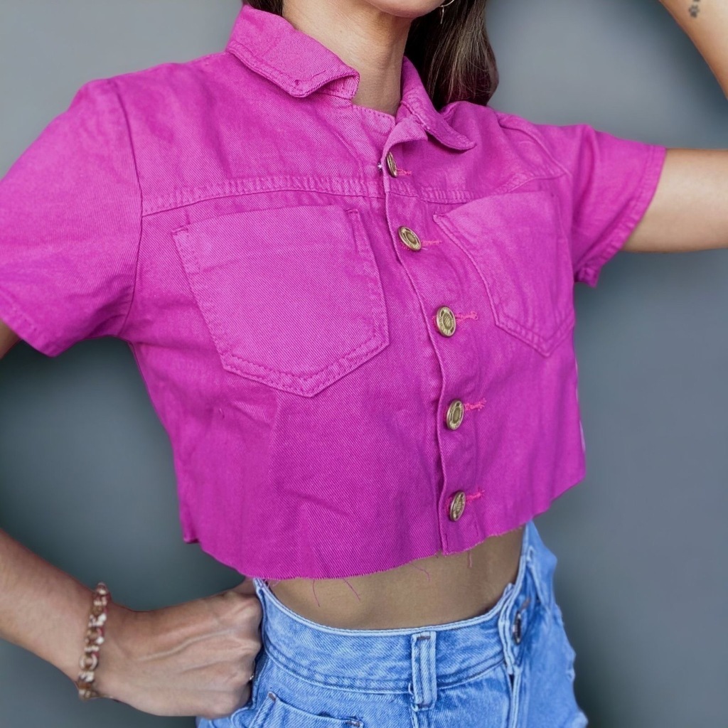A jaqueta cropped na cor fúcsia é uma peça vibrante e cheia de estilo. Com uma barra a fio, ela apresenta um acabamento moderno e descontraído, adicionando um toque de autenticidade ao visual. Feita de 100% algodão, o tecido proporciona conforto e respirabilidade, tornando-a ideal para diversas ocasiões. A cor fúcsia acrescenta um toque de ousadia e vivacidade, destacando-se com elegância. Esta jaqueta é mais do que apenas uma peça de vestuário; é uma declaração de moda vibrante e linda. Seu design é perfeito para criar looks modernos e estilosos, garantindo que você se destaque com sofisticação. modelo veste : TAM: (M)